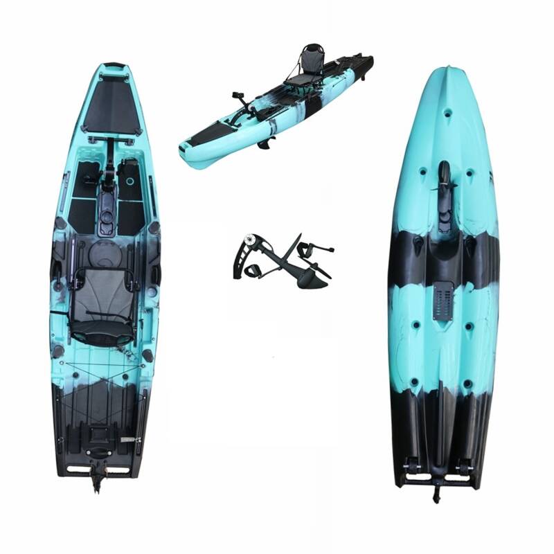 Stabilité et contrôle améliorés : avec ses 320 CM de longueur, ce kayak offre une stabilité exceptionnelle sur diverses conditions d'eau. Que vous glissiez à travers un lac calme ou que vous naviguiez dans les eaux agitées, la conception de la coque plus large assure une conduite régulière. Cette stabilité est cruciale, en particulier pour les débutants qui trouvent confiance sur l'eau ou pour les pêcheurs qui ont besoin d'une plate-forme solide à partir de laquelle lancer leurs lignes.Vous pouvez également choisir un moteur de pêche à la traîne de 46 livres à la place du pédalier. Ce moteur de pêche à la traîne électrique noir A80 élégant possède une capacité de poussée de 24 lb, offrant une puissance impressionnante pour ceux qui cherchent à explorer plus loin et plus rapidement. Il est conçu pour être polyvalent, facile à mettre en place.